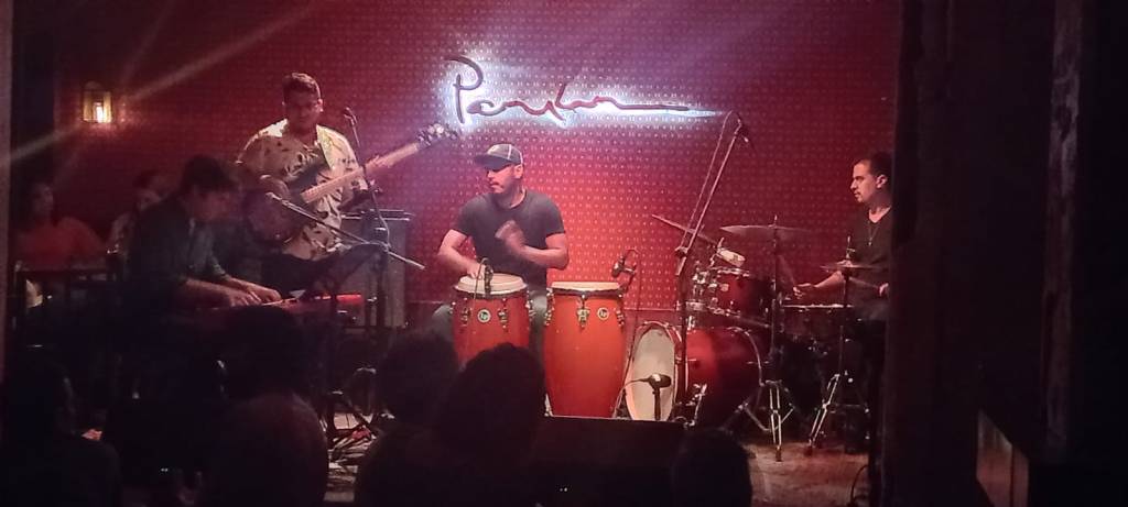 La impresión inmediata en ambas piezas fue la de la consistencia y la fuerza musical del cuarteto, y ese estilo maduro y bien articulado que ya había yo podido percibir. Batería, bajo y congas conformaban un encuadre rítmico vigoroso y de sabrosa cadencia –no hay otra manera de decirlo–, que configuraban una base sonora bien afinada para que el piano de Daniel se destacara soberano de un escenario que le pertenecía sin duda y por completo.