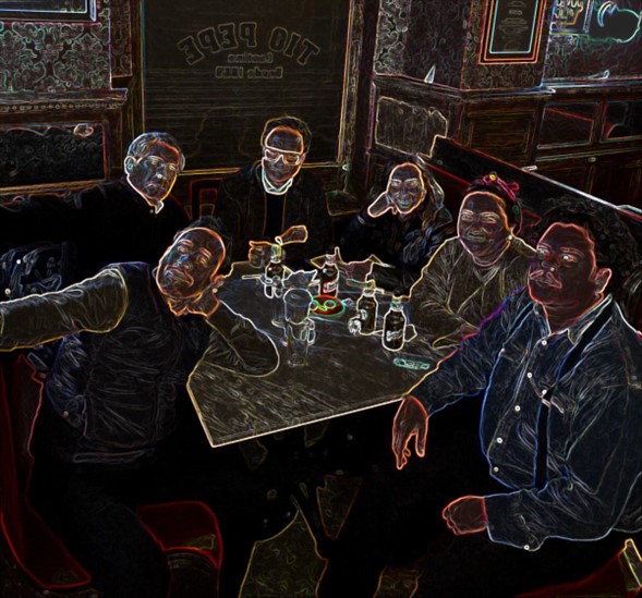 Jueves 30 de noviembre. T., LD. y yo llegamos tan solo con unos cuantos minutos de diferencia a la Tío Pepe, por ahí de las 7.30 de la noche. Varios compañeros habían anunciado ya que no llegarían a la cita, y F. lo haría tal vez un poco más tarde, pero al final no lo logró.