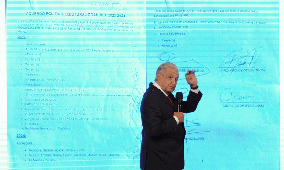 Resulta ser que Cortés hizo público lo que ya conocemos todos como los “papelitos del PRIAN”, con el listado de acuerdos a través de los que se repartían a discreción cargos y posiciones en prácticamente toda la estructura administrativa del estado de Coahuila (“Acuerdo político electoral Coahuila 2023-2024”, es el nombre del documento), y en donde lo mismo daba que se tratara de posiciones de elección popular, administrativas, de órganos “autónomos”, de desconcentrados o descentralizados, así como la concesión de notarías.