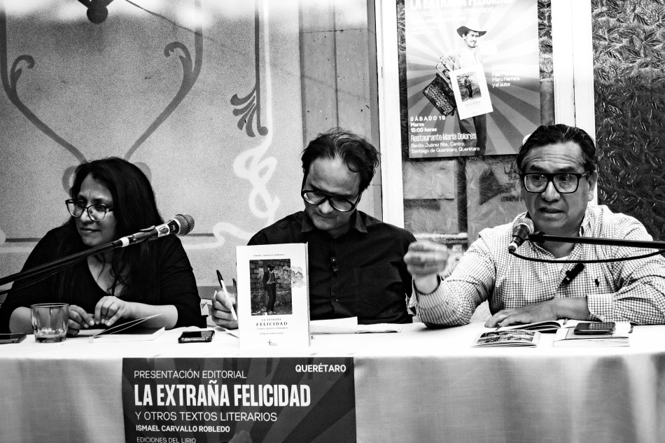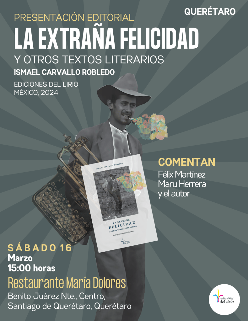 A partir de su aparición al inicio de este año, de La extraña felicidad y otros textos literarios (Ediciones del Lirio, 2024, 204 páginas) hemos hecho ya dos presentaciones: en la FIL de Minería primero, en donde me acompañaron Tania Hernández, Sebastián Pineda y mi editor, Raúl Mendieta, y en la ciudad de Querétaro después (restaurante María Dolores, centro histórico), en donde me acompañaron mis queridos Maru Herrera y Félix Martínez. Este próximo viernes 29, al punto de las siete de la noche, estaremos mi también querido amigo Oscar Novella y yo en la cantina El Retiro, en el centro histórico de Zacatecas, en un conversatorio organizado para los mismos efectos.
