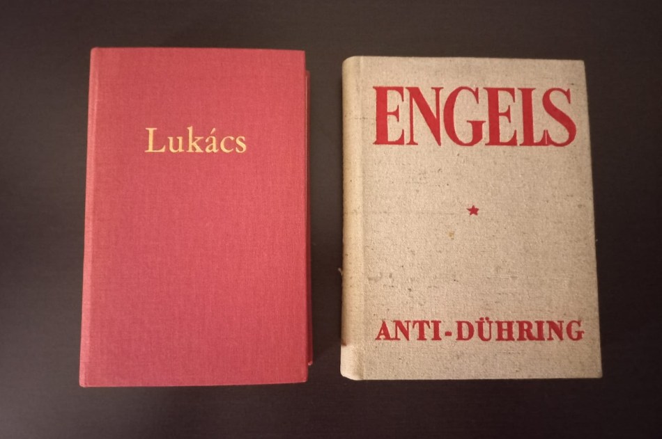 Porque ocurre que, efectivamente, y como era obvio saber por lo demás, en las librerías era muy poco, si no es que nada en realidad, lo que me iba a poder encontrar publicado en inglés o en español, siendo imposible desde luego que me pudiera interesar lo publicado en húngaro a no ser que lo hiciera por el fetichismo del coleccionista, que algo de eso también tengo ciertamente porque ocurre que, en efecto, en la primera liberaría que encontré (el nombre no lo recuerdo pues no entendí una palabra de él) a la vuelta del hotel precisamente y ni más ni menos (el Novotel Budapest Danube), me compré un par de ediciones en húngaro de El joven Hegel de Lukács y del Anti-Dühring de Engels, además de que encontré tres cosas bien interesantes, las tres, ellas sí, en español.