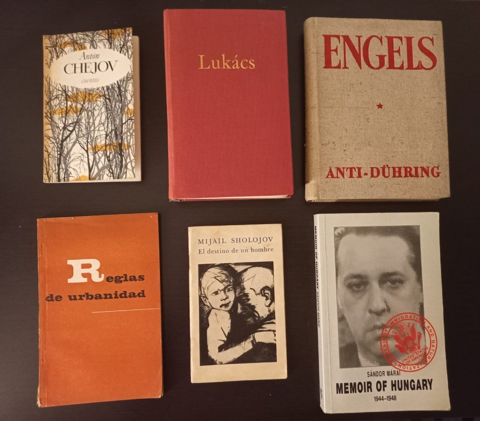 En un mismo tenor y formato, me compré también otro bello libro de cuentos de Chejov, editado igualmente por Editorial Progreso de Moscú el año que yo nací, 1974, además de llevarme también una rareza absoluta y bastante chocante ciertamente, creo yo, para quienes, como los húngaros, tuvieron que vivir los estragos del régimen comunista de aquellos tiempos, porque ocurre que mi tercera compra en español en esa entrañable librería atendida por una anciana generosa y amable que se esforzaba por buscarme cosas en español o inglés según le pedí al contarle de mi procedencia, fue ni más ni menos que un pequeño manual de Reglas de urbanidad soviético de 1963.